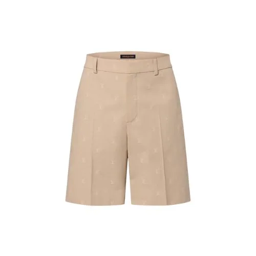 These cotton chino shorts in classic beige tones are perfect for warmer days. They are distinguished with an allover LV Blason in a tonal jacquard and signed with a ‘Marque L.Vuitton déposée’ embossed leather tag on the back pocket. These shorts can be worn with a matching blouson for a smart summery look.